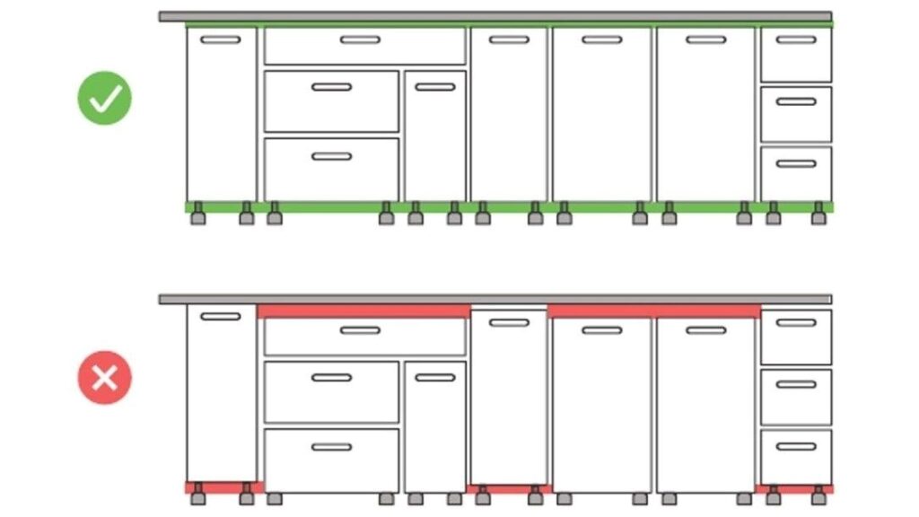 יש לוודא שהארונות מפולסים ובגובה שווה.