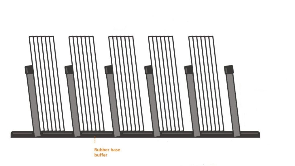 הלוחות מאוחסנים על בסיס מתכת ללא חוצצים מגנים.