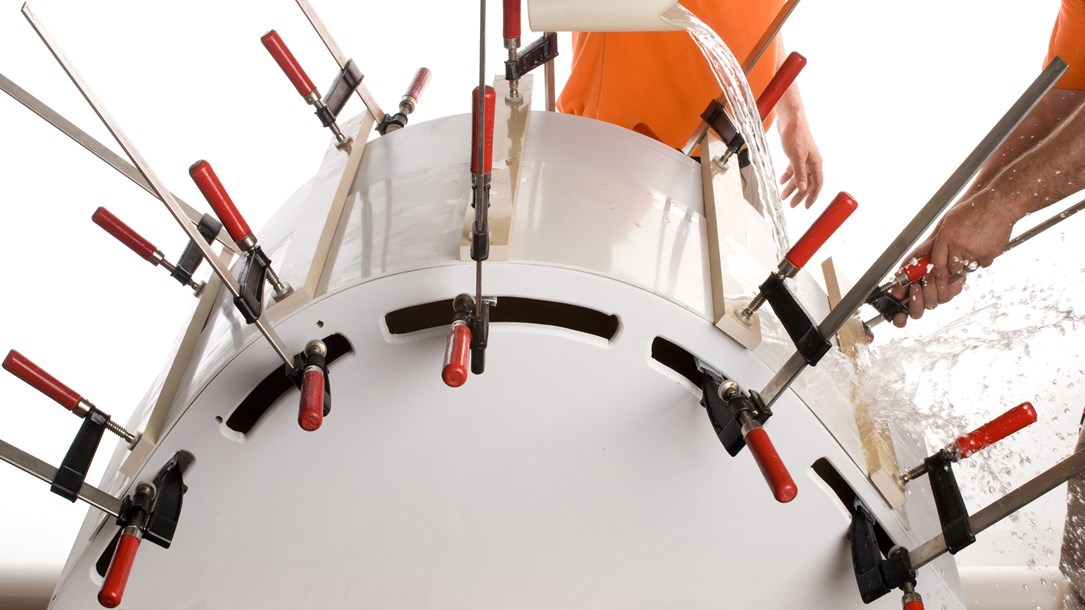 4. מלאו את החיבורים בדבק והסירו דבק עודף מהמשטח.